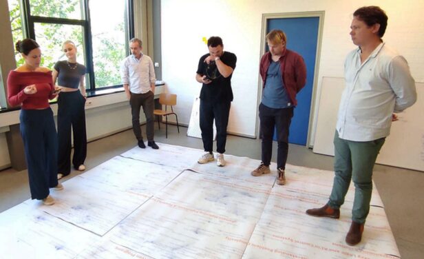 The floor mat, called the “Grounded AI Map,” has been created by ADD researchers Mathieu Jacomy, Anders Munk, Mathilde Ficozzi, and others. It is an evolution of their previous mapping of scientific literature on algorithms and AI, conducted as part of the ADD project.